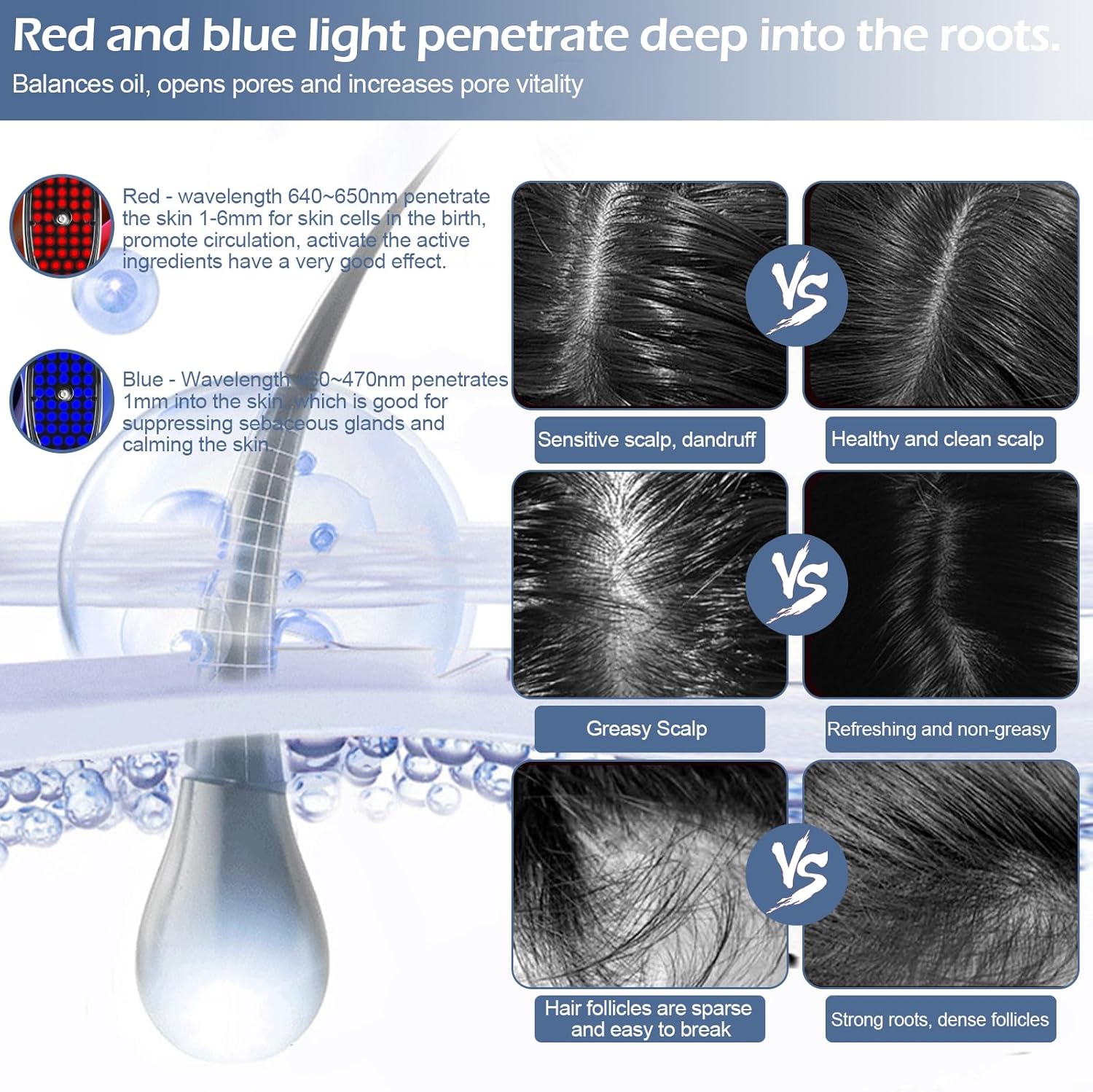 • Adjustable Vibration Massage (3 Gears): Stimulates blood flow, relieves fatigue, promotes follicle health, and encourages hair growth.